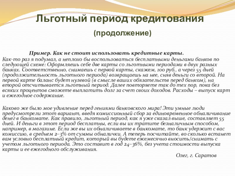 Практически все банки, предлагая вам использовать кредитную карту, рекомендуют