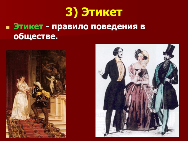 3) ЭтикетЭтикет - правило поведения в обществе.