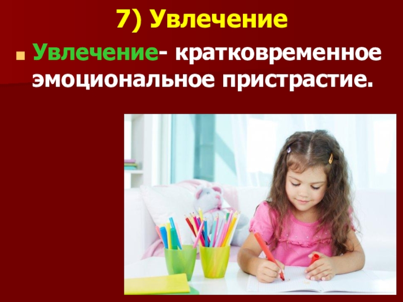 7) УвлечениеУвлечение- кратковременное эмоциональное пристрастие.