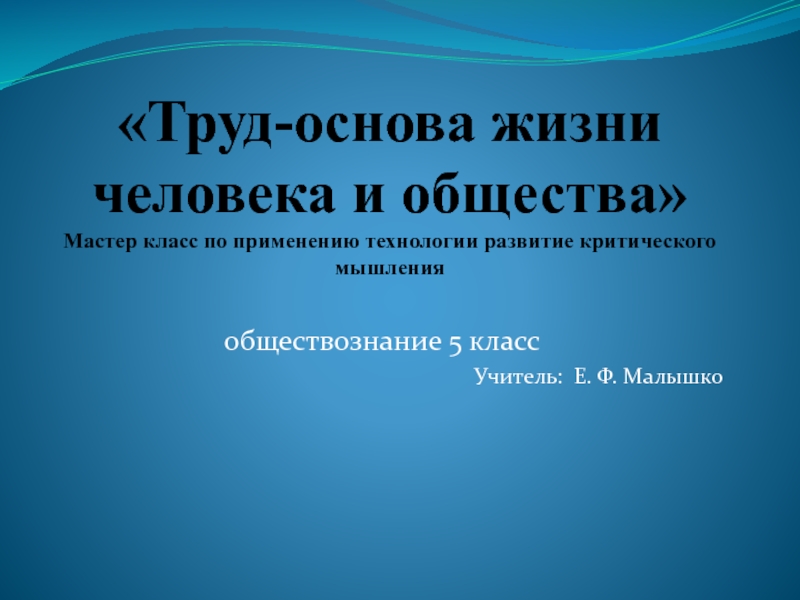 Учитель: Е. Ф. Малышко