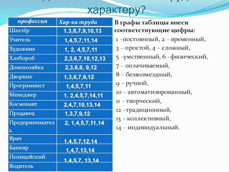 Задание 2. Каким бывает труд по характеру?