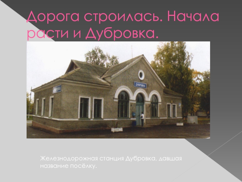 Слайд 5Дорога строилась. Начала расти и Дубровка.