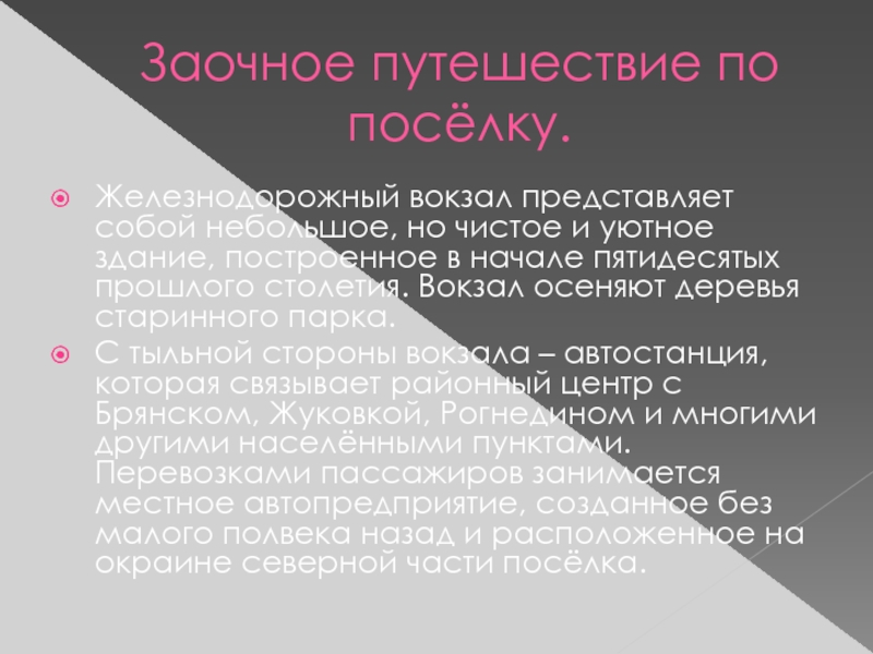 уютное здание, построенное в начале пятидесятых прошлого столетия. Вокзал осеняют деревья старинного парка.