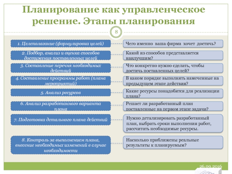8. Контроль за выполнением плана, внесение необходимых изменений в случае необходимости