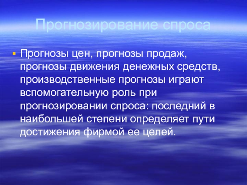 играют вспомогательную роль при прогнозировании спроса: последний в наибольшей степени определяет пути достижения фирмой ее целей.