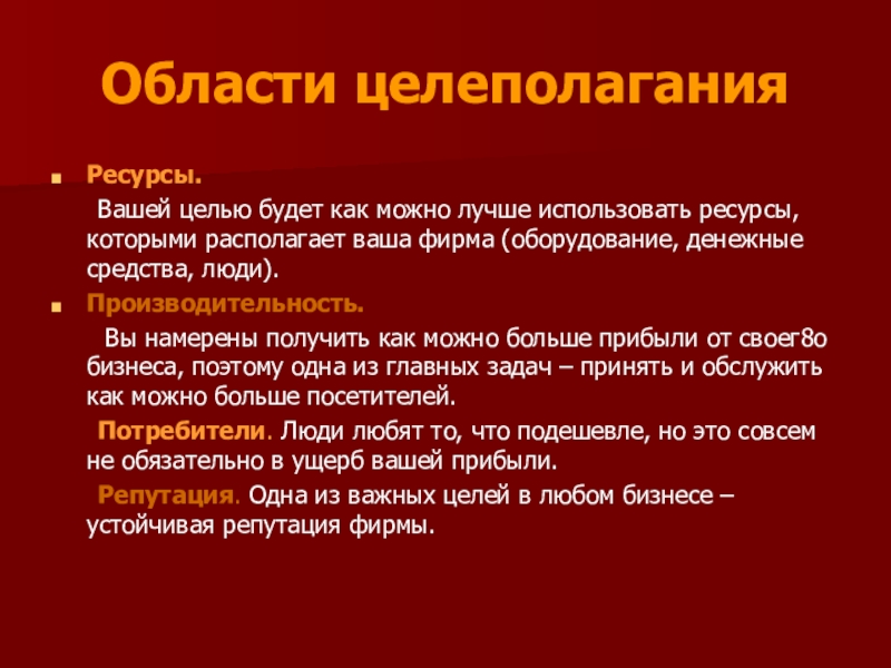 1. Цели (какие бывают цели; главные, общие цели; частные цели; области целеполагания; требования к цели)