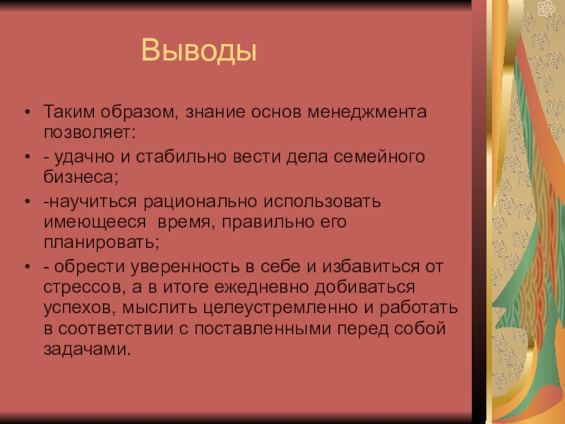 Цели урока: познакомить учащихся с сущностью понятий менеджмент, самоменеджмент, принципами
