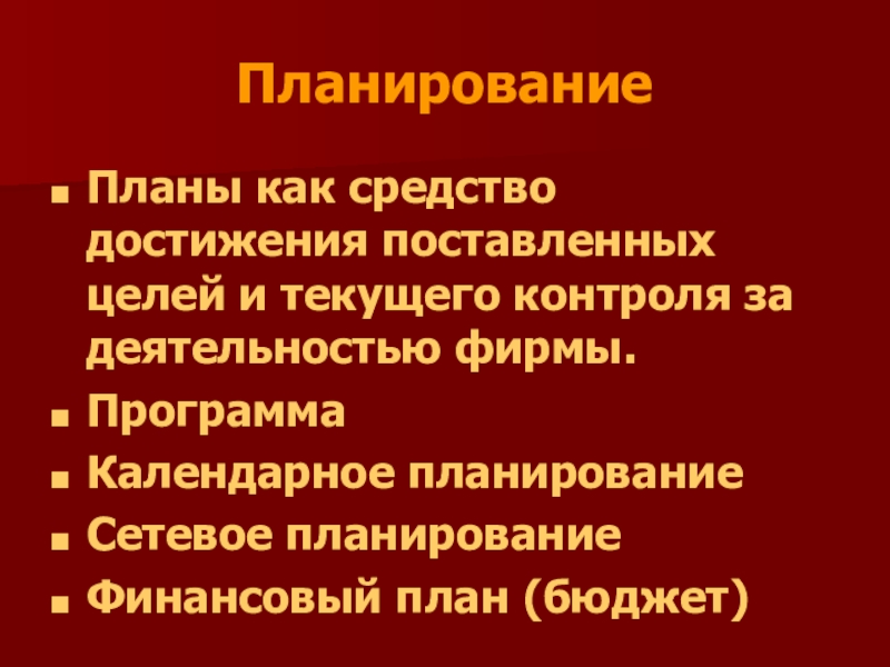 Планы как средство достижения поставленных целей и текущего контроля за деятельностью