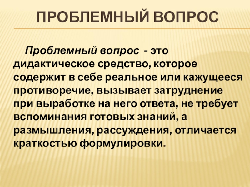 Проблемный вопрос - это дидактическое средство, которое содержит