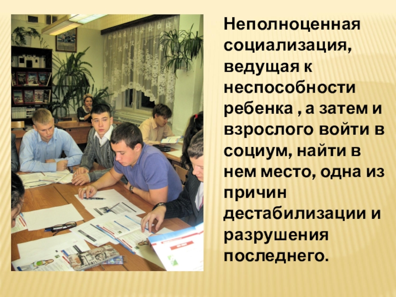 Слайд 3Неполноценная социализация, ведущая к неспособности ребенка , а затем и взрослого