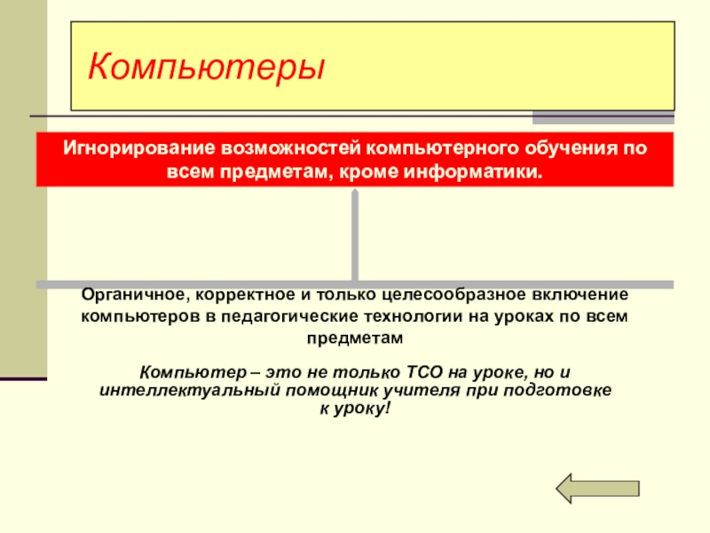 Игнорирование возможностей компьютерного обучения по всем предметам, кроме информатики.