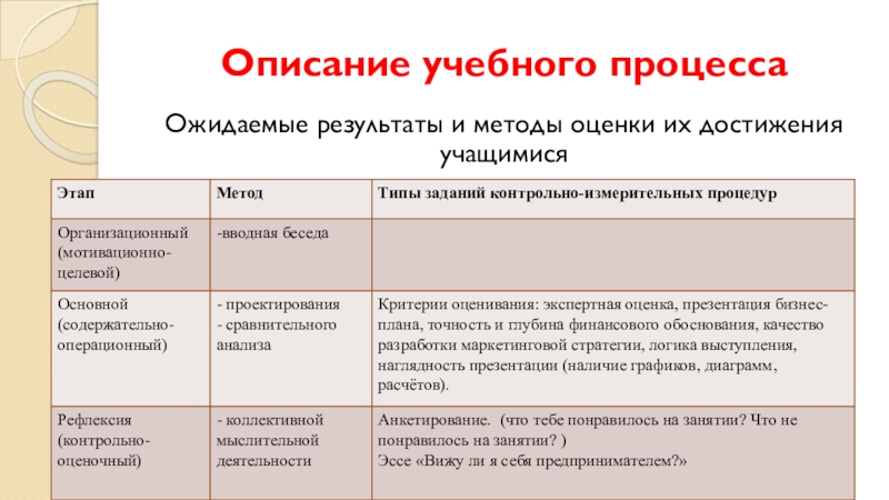 Ожидаемые результаты и методы оценки их достижения учащимися
