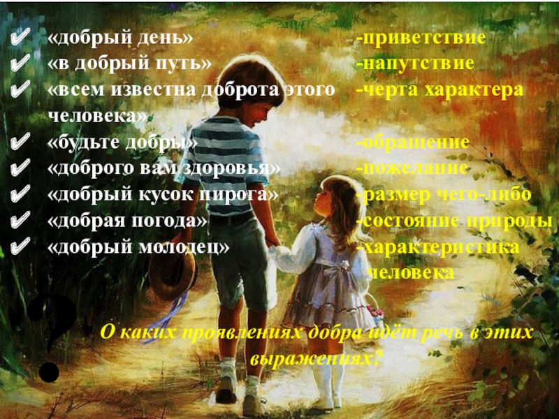 О каких проявлениях добра идёт речь в этих