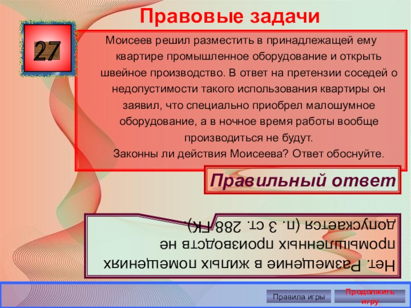 Нет. Размещение в жилых помещениях промышленных производств не допускается (п. 3 ст. 288 ГК).