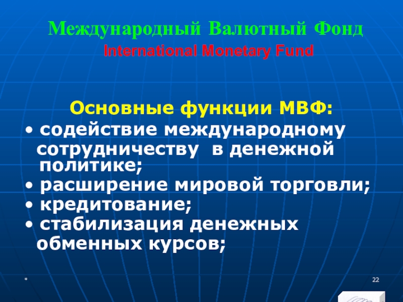 Слайд 22Международный Валютный Фонд International Monetary Fund