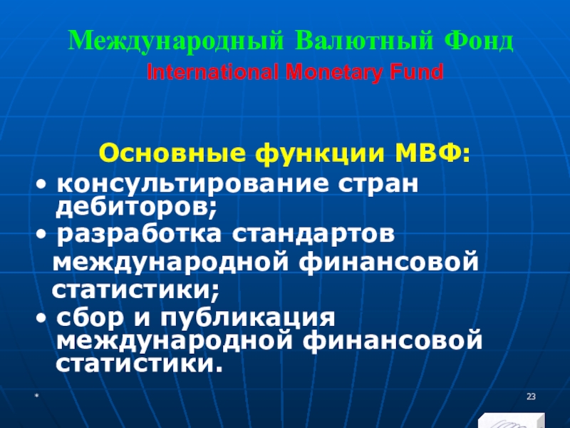 Слайд 23Международный Валютный Фонд International Monetary Fund