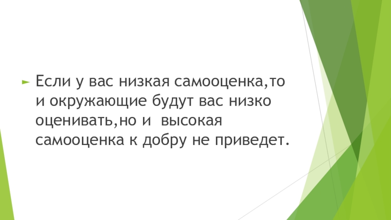 Слайд 12Если у вас низкая самооценка,то и окружающие будут вас низко оценивать,но