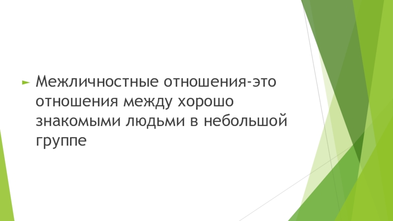 Слайд 2Межличностные отношения-это отношения между хорошо знакомыми людьми в небольшой группе