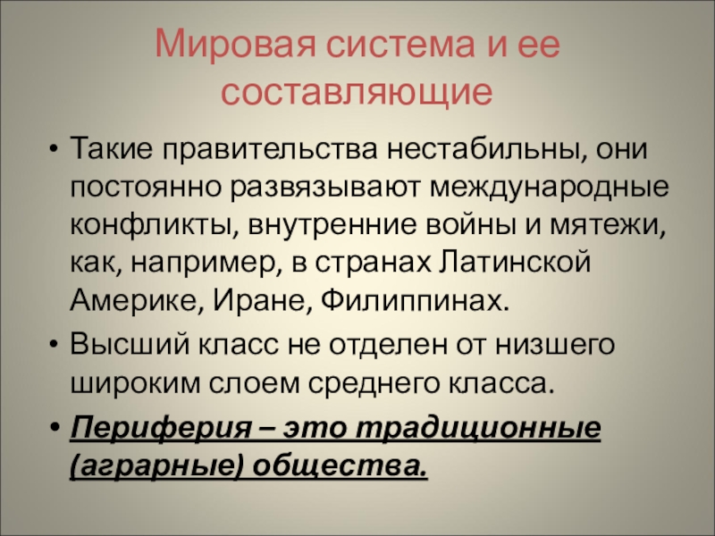 Слайд 6Мировая система и ее составляющие