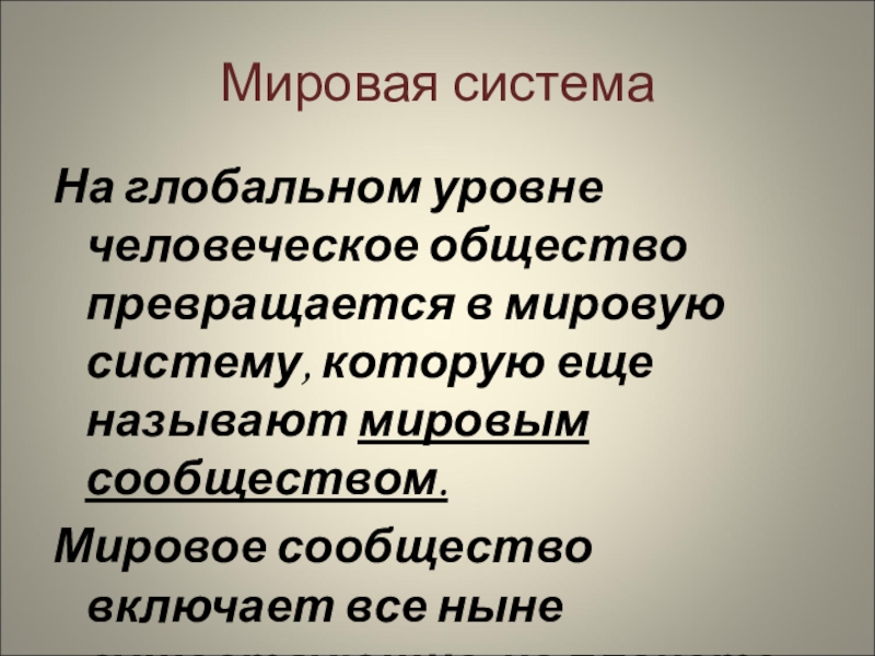 На глобальном уровне человеческое общество превращается в мировую систему,