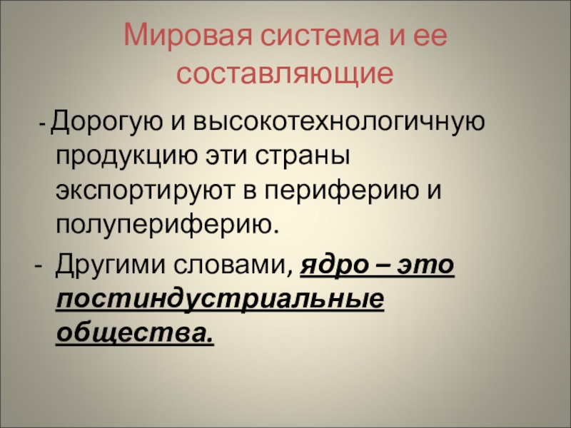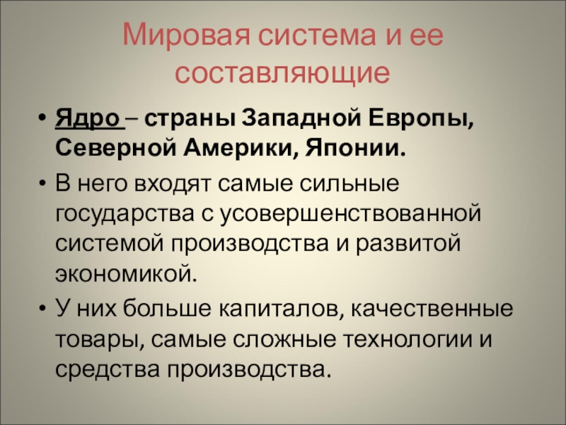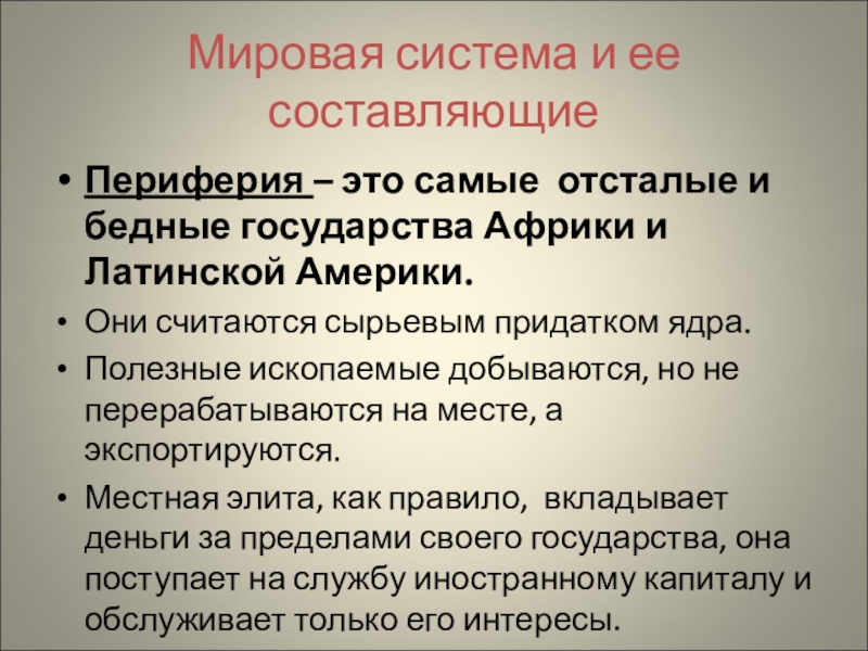Слайд 8Мировая система и ее составляющие