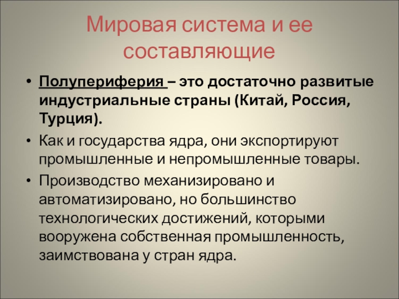 Полупериферия – это достаточно развитые индустриальные страны