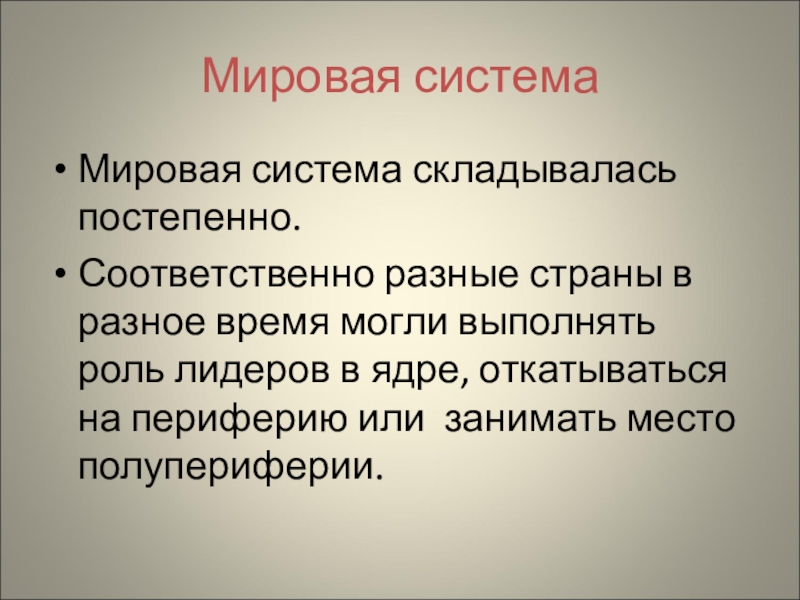 Мировая система складывалась постепенно.