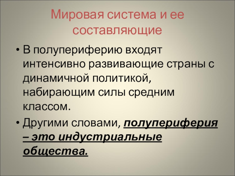 Другими словами, полупериферия – это индустриальные общества.