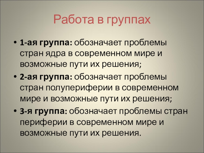 3-я группа: обозначает проблемы стран периферии в современном мире и возможные пути их решения.
