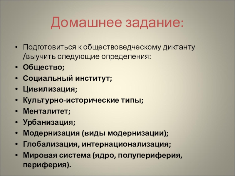 Подготовиться к обществоведческому диктанту /выучить следующие определения: