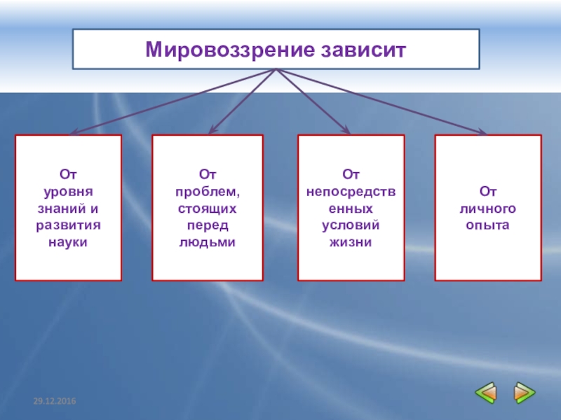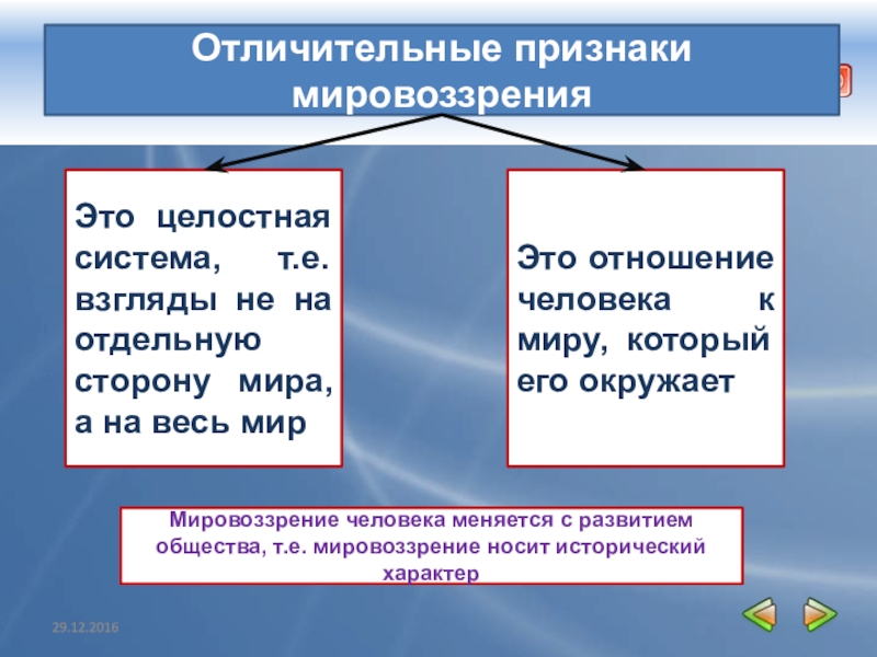 Мировоззрение человека меняется с развитием общества, т.е. мировоззрение носит исторический характер