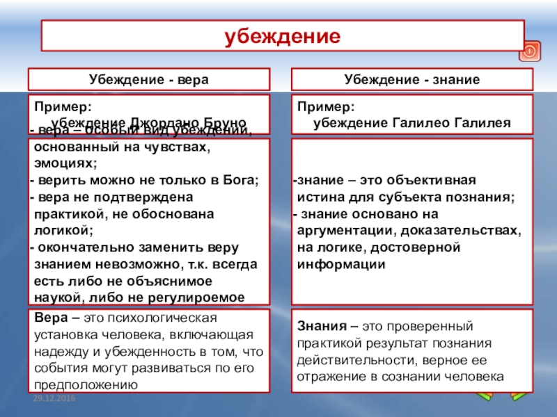вера – особый вид убеждений, основанный на чувствах, эмоциях;