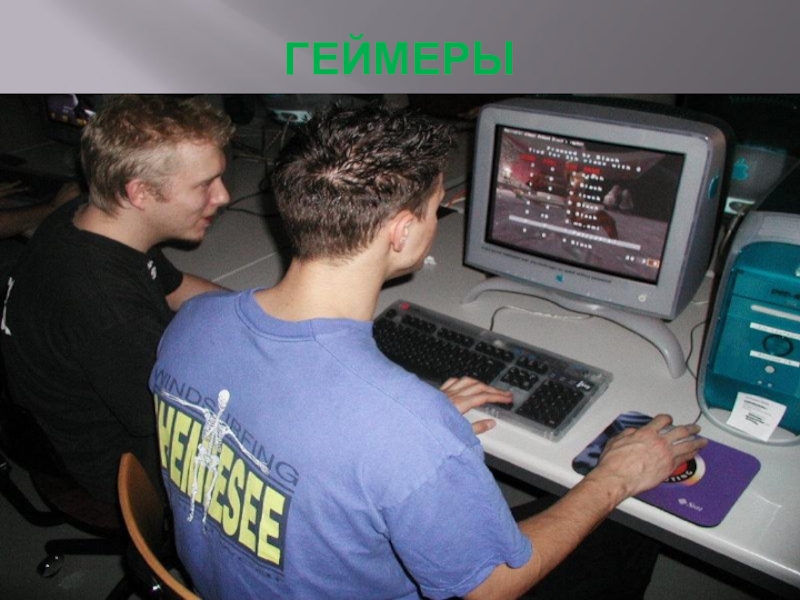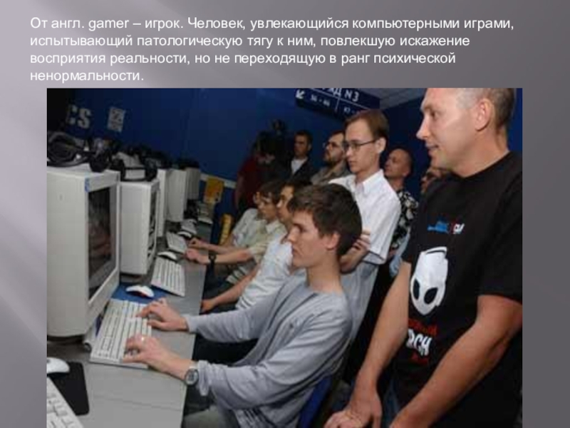Слайд 34От англ. gamer – игрок. Человек, увлекающийся компьютерными играми, испытывающий патологическую