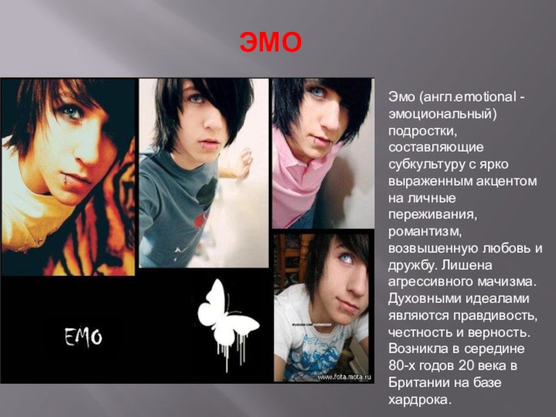 Слайд 27Эмо отличает особое, чувственное мироощущение.
