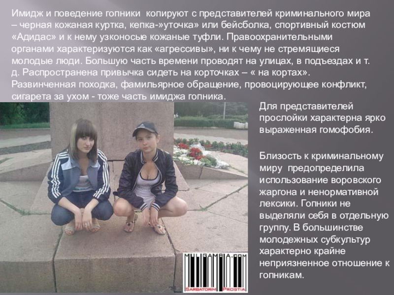Слайд 39Имидж и поведение гопники копируют с представителей криминального мира – черная