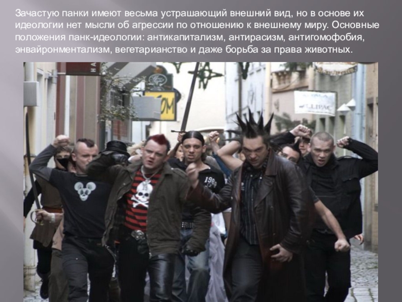 Слайд 19Зачастую панки имеют весьма устрашающий внешний вид, но в основе их