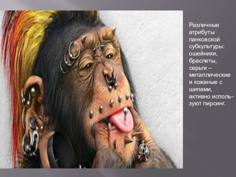 Слайд 18Различные атрибуты панковской субкультуры: