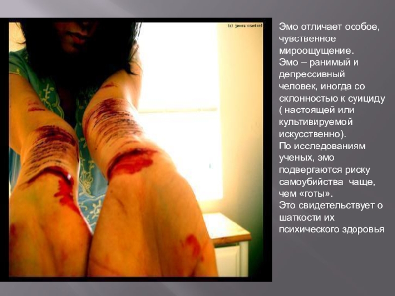 По исследованиям ученых, эмо подвергаются риску самоубийства чаще, чем «готы».