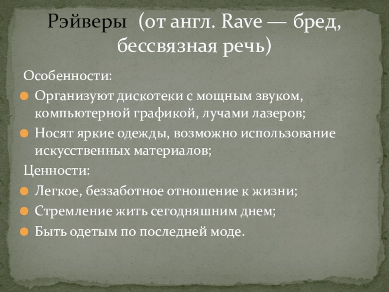 Рэйверы (от англ. Rave — бред, бессвязная речь)