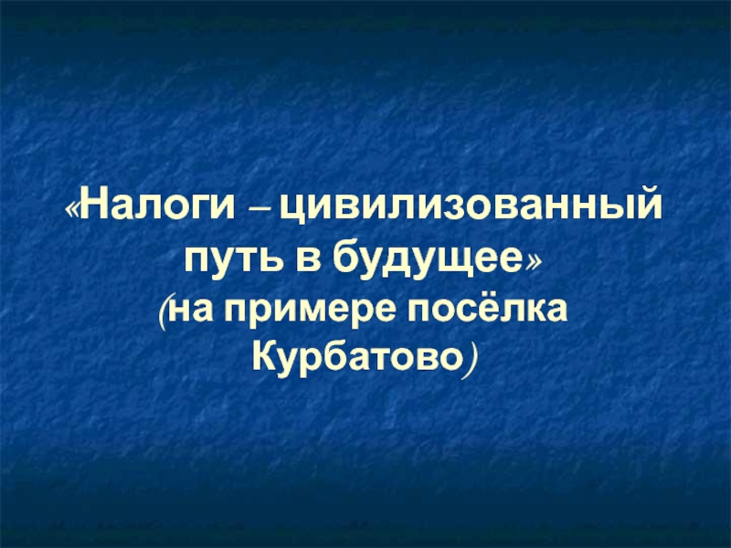 Слайд 1«Налоги – цивилизованный путь в будущее» (на примере посёлка Курбатово)