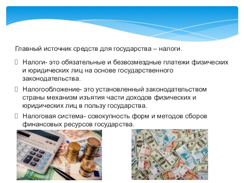 Налогообложение- это установленный законодательством страны механизм изъятия части доходов физических и юридических лиц в пользу государства.