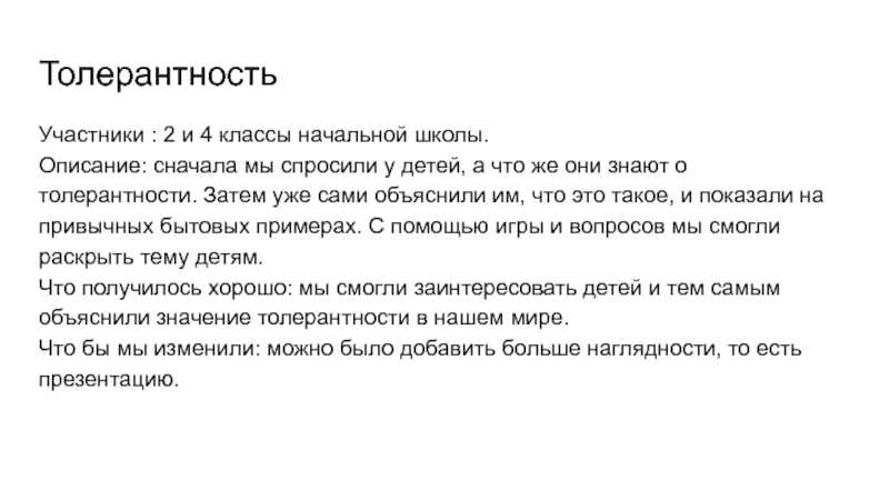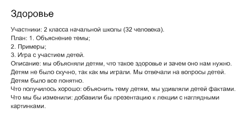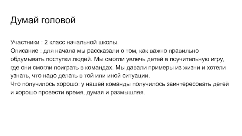 “Волонтер” звучит гордо. Россия. Как велико звучит название нашей страны. Не так ли? А знаете, кто будущее нашей страны? Дети. Мы, молодое поколение, достояние страны, которым должны гордиться старшие. Мною уже гордятся моя семья, учителя, друзья и знакомые. А знаете почему? Потому что я волонтер! Кто такие волонтеры? Если смотреть этот отчет, то создается ощущение, что волонтеры - это люди, которые проводят время с детьми и их развлекают. А вот и нет. Волонтер - это самый добродушный человек, который всегда сможет помочь другим. Это трудолюбивый человек, целеустремленный и уверенный в себе. Это лидер, который готов брать на себя ответственность.