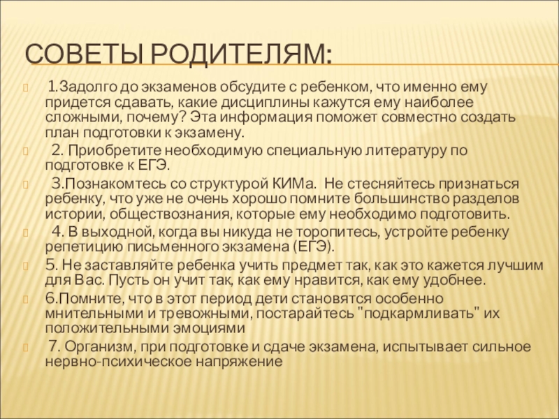 Слайд 15СОВЕТЫ РОДИТЕЛЯМ: