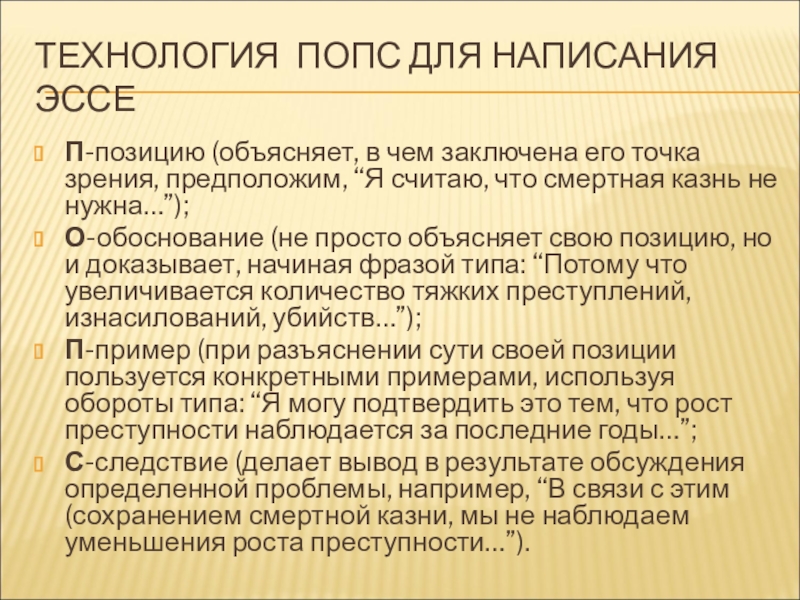 Слайд 11ТЕХНОЛОГИЯ ПОПС ДЛЯ НАПИСАНИЯ ЭССЕ