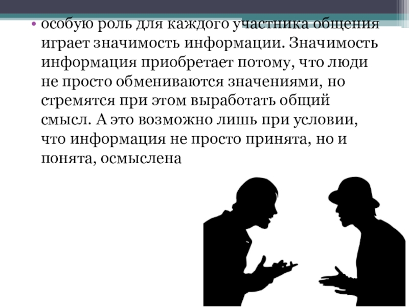 Слайд 6особую роль для каждого участника общения играет значимость информации. Значимость информация