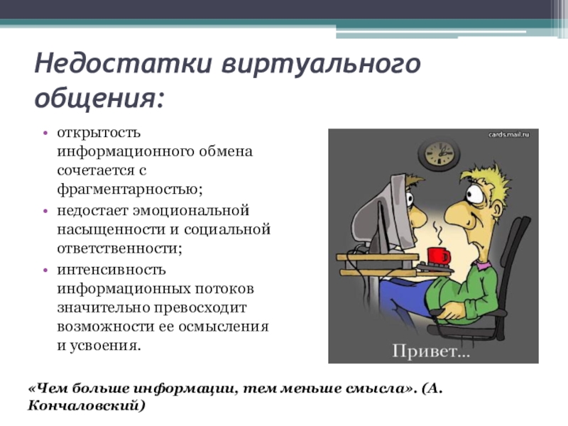 интенсивность информационных потоков значительно превосходит возможности ее осмысления и усвоения.