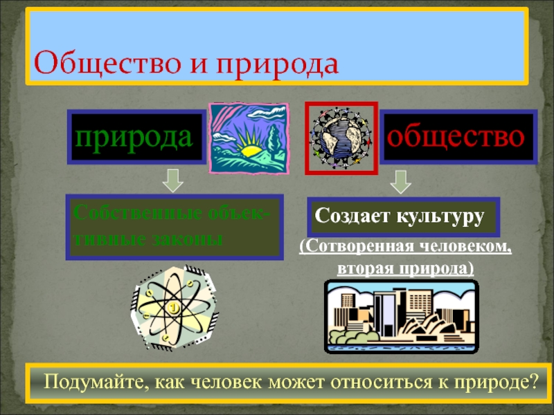 Общество и природа Подумайте, как человек может относиться к природе?