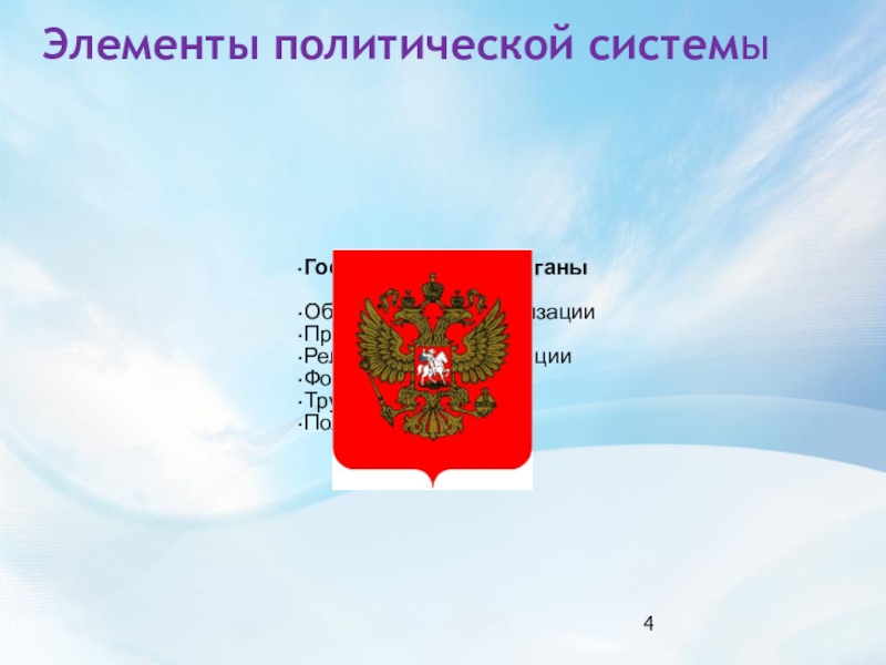 Слайд 4Элементы политической системы