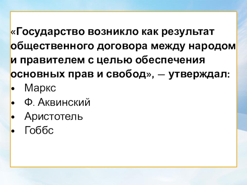 Г) государство результат общественного договора граждан, делегирующим представителям свои полномочия