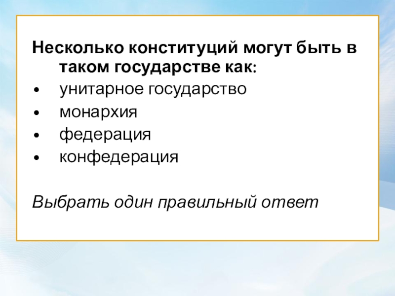 Единые конституция и гражданство характерны для такого государства как: